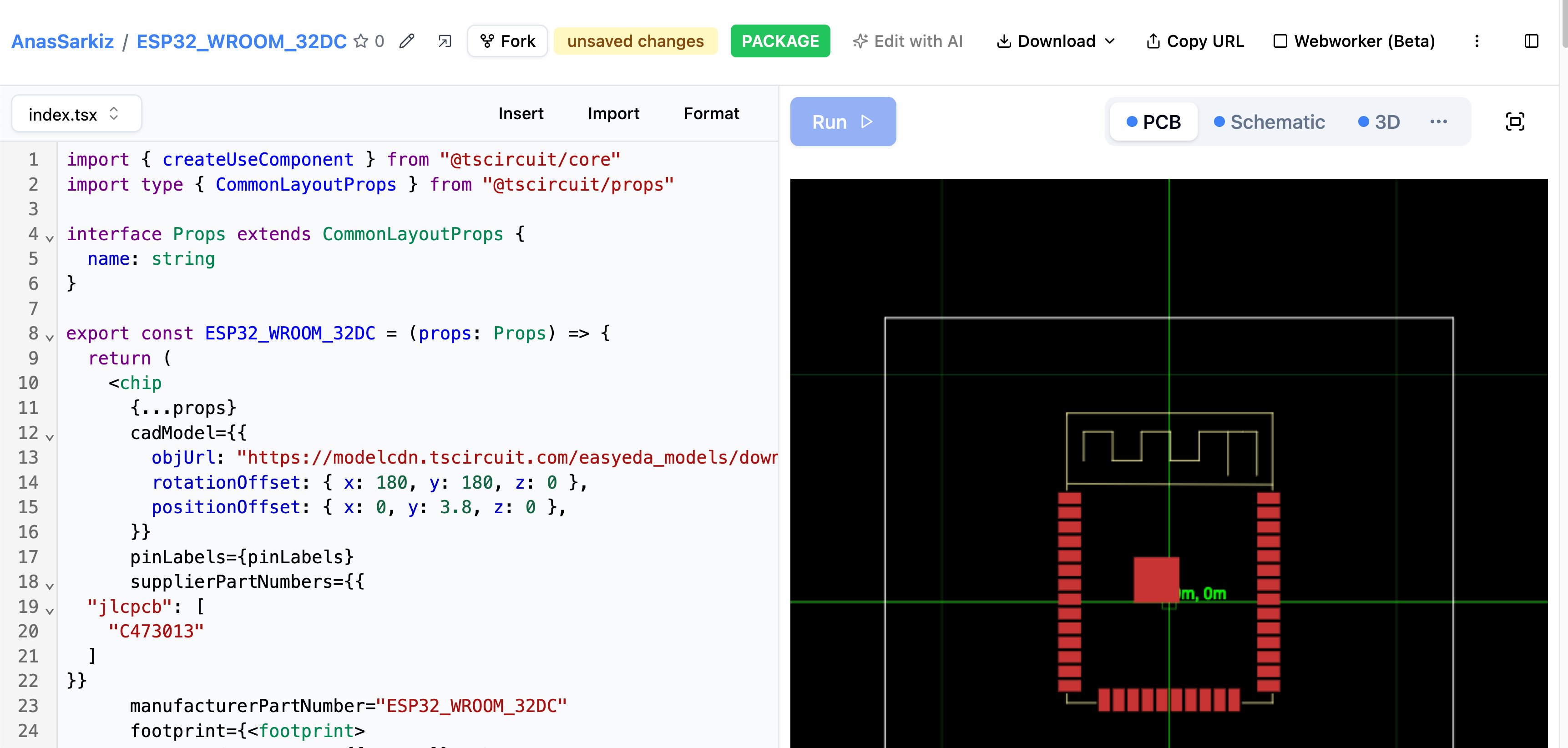 You can import JLCPCB components on tscircuit.com. After importing the snippet, it'll be given a package name like @tsci/YOUR_NAME.CHIP_NAME and available for import from the tscircuit registry.